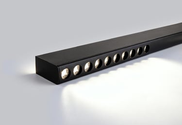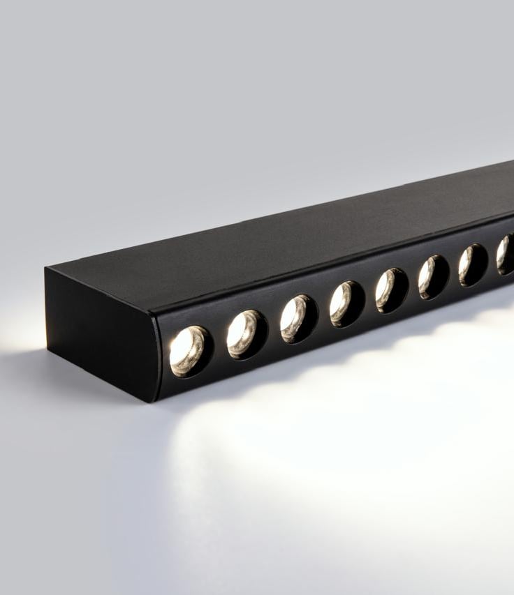 Focos dirigibles que permiten destacar detalles, generar contrastes y crear atmósferas modernas y versátiles.